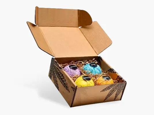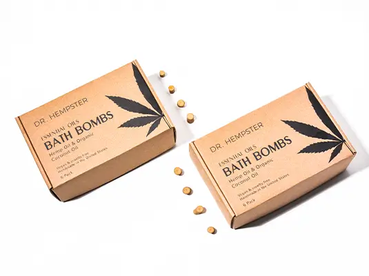 You can get your bath bomb packaging printed with eco-friendly kraft paper, cardstock, or corrugated material.